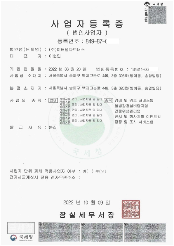 이터널파트너스를 방문해주신 고객 여러분께 진심으로 감사 드립니다. e-파트너스는 2003년 이벤트 행사 질서유지(경호/경비)업무를 시작으로 안전한 공연문화 선도를 위하여 전문성을 갖춘 최고의 인력이 기획 단계부터 사후관리까지 책임을 지며, 최고의 퀄리티와 최상의 운영방법으로 고객감동을 실현할 수 있도록 하겠습니다. 고객의 입장을 돌아볼 줄 아는 여유, 이것이야 말로 e-파트너스만이 가지고 있는 맞춤 서비스 정신입니다. e-파트너스는 앞으로도 한결같이 고객 중심으로 여러분의 요구(Needs)를 만족시키고 시장의 변화를 선도하기 위해 다양한 도전과 노력을 아끼지 않을 것입니다. 사업영역으로는 특수경비,경호/보안서비스,시설/미화관리,아웃소싱 & 엔터테인먼트를 시작으로 FM 종합관리 비즈니스 기업 성장을 위하여 원칙과 성실함으로 초심을 지키겠습니다. 대표이사 이현민